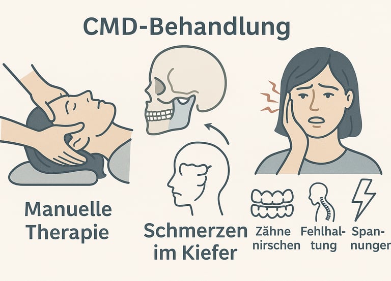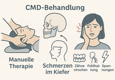 Schmerzen im Kiefer, Kopf oder Nacken? Häufig steckt eine CMD (Craniomandibuläre Dysfunktion) dahinter – eine Funktionsstörung des Kiefergelenks und der umgebenden Muskulatur.
